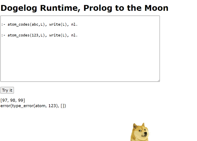 screenshot of a slightly modified input. Unfortunately, Dogelog does
